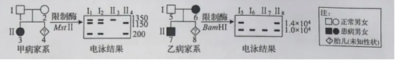 B.甲病可能由正常基因发生碱基对的替换导致,替换后的序列可被Mst II识别