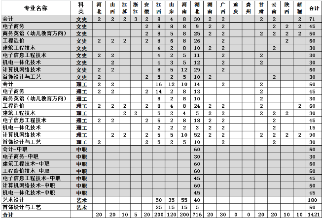 2020年分省分专业招生计划(专科)