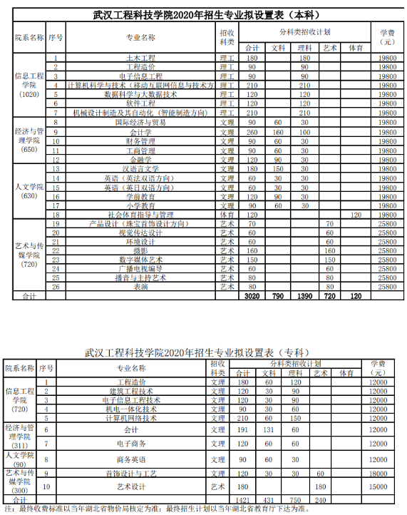 武汉工程科技学院招生计划2020