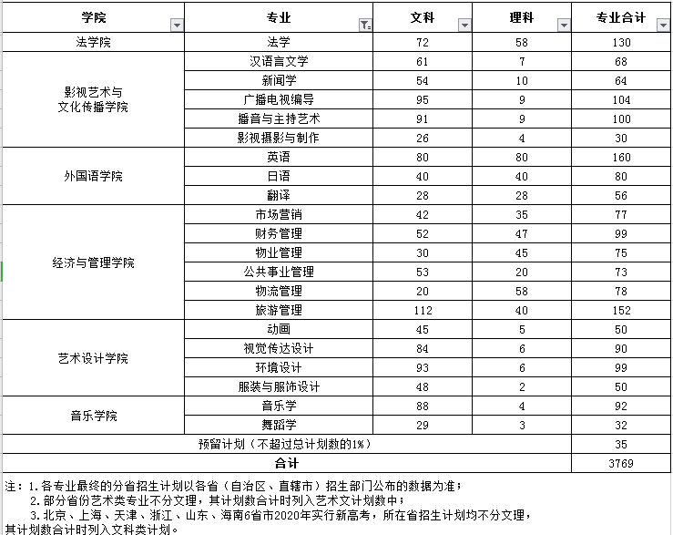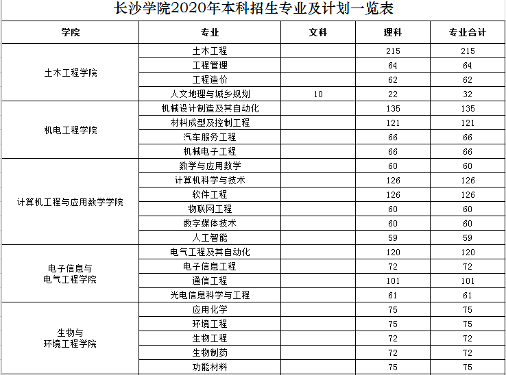 长沙学院招生计划2020