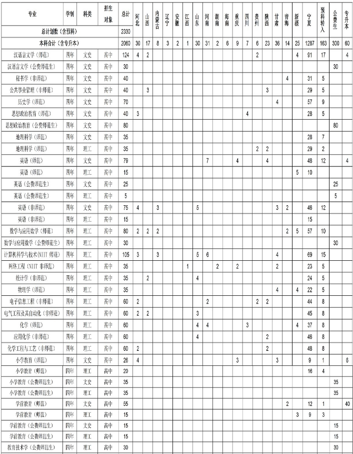 高校招生计划是考生填报志愿时的一个重要依据,下面小编整理了宁夏师范学院2020年的招生计划,供大家参考!