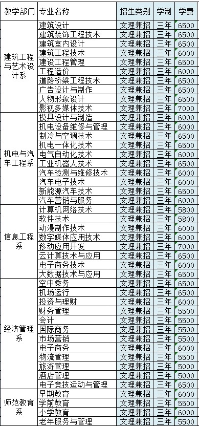 目前,学院设有师范教育系、经济管理系、建筑工程与艺术设计系、信息工程系、机电与汽车工程系、国际教育学院、马克思主义学院、体育教学部、开放学院等教学系部。开设有学前教育、小学教育、会计、建筑装饰工程技术、汽车检测与维修、软件技术、空中乘务等41个三年制高职专业及方向,18个五年制高职专业。拥有全日制在校生15578人,国际留学生439名,成人教育在校生近3000人。