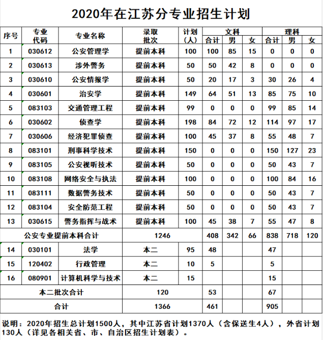 近日,同学们和广大家长朋友们非常关注的2020年江苏警官学院招生计划及招生人数已经公布,下面小编为大家详细介绍一下,供大家参考。