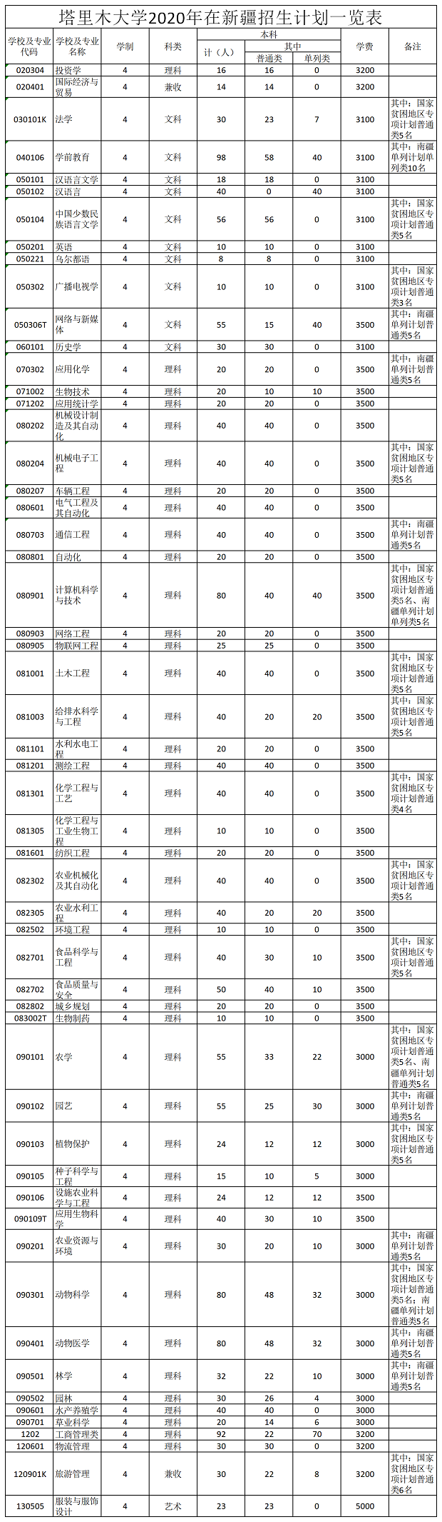 以上是塔里木大学在新疆的招生计划,其余省市招生计划详见学校官网。