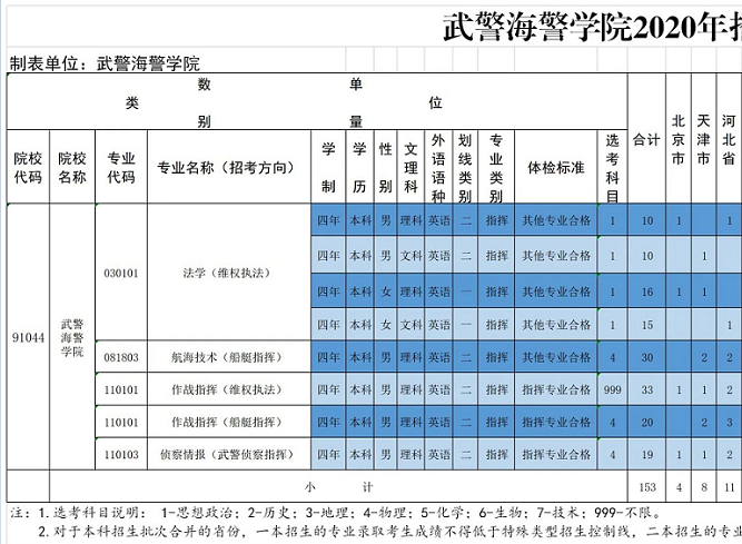 武警海警学院招生计划2020