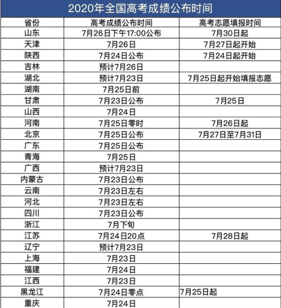 由于肺炎疫情的关系,高考顺延了一个月,这也意味着高考后出分数线的时间也会延后大约一个月。那么2020年高考成绩公布时间是什么时候呢,下面小编为大家详细介绍一下,供大家参考。