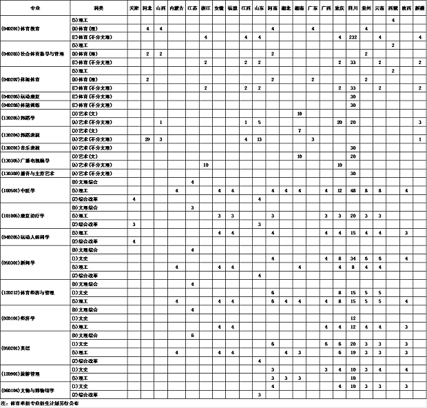成都体育学院招生计划2020