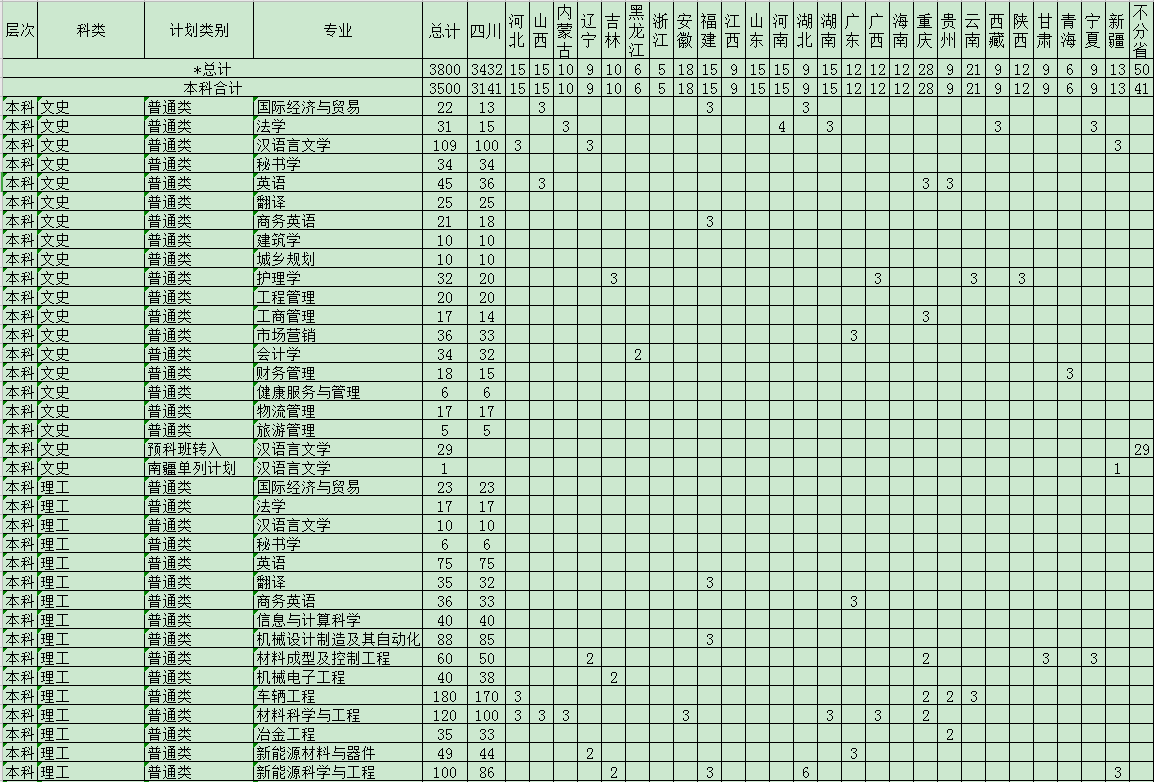 攀枝花学院招生计划2020
