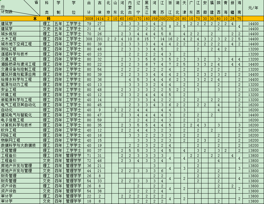 吉林建筑科技学院招生计划2020