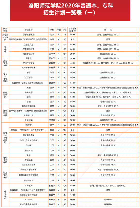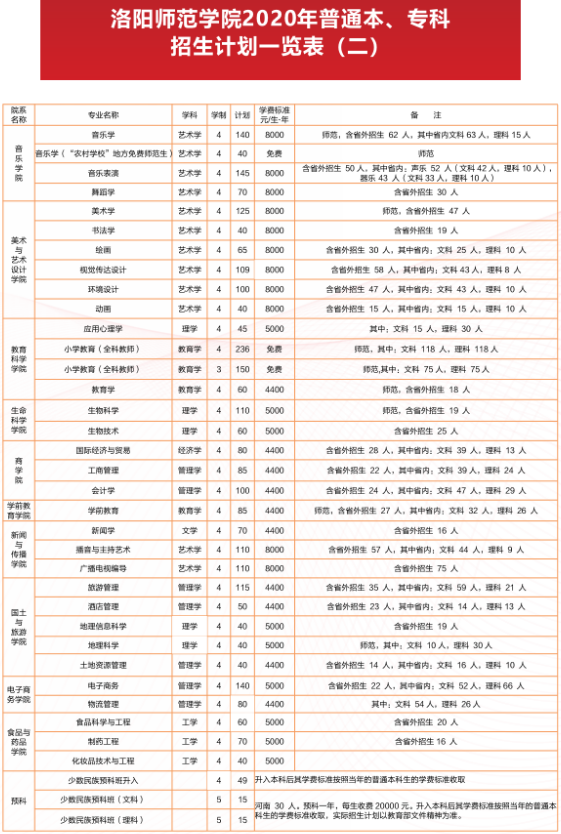 洛阳师范学院招生计划2020
