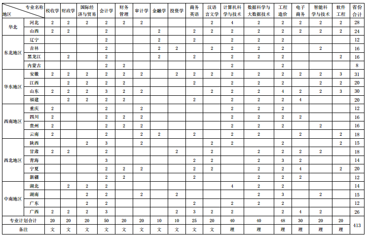 2020河南财政金融学院招生专业及计划