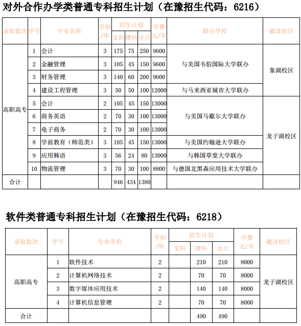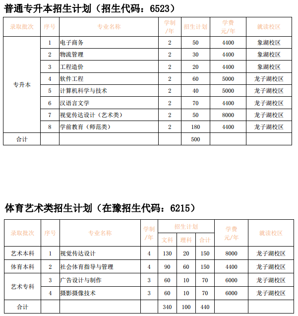 河南财政金融学院招生计划2020