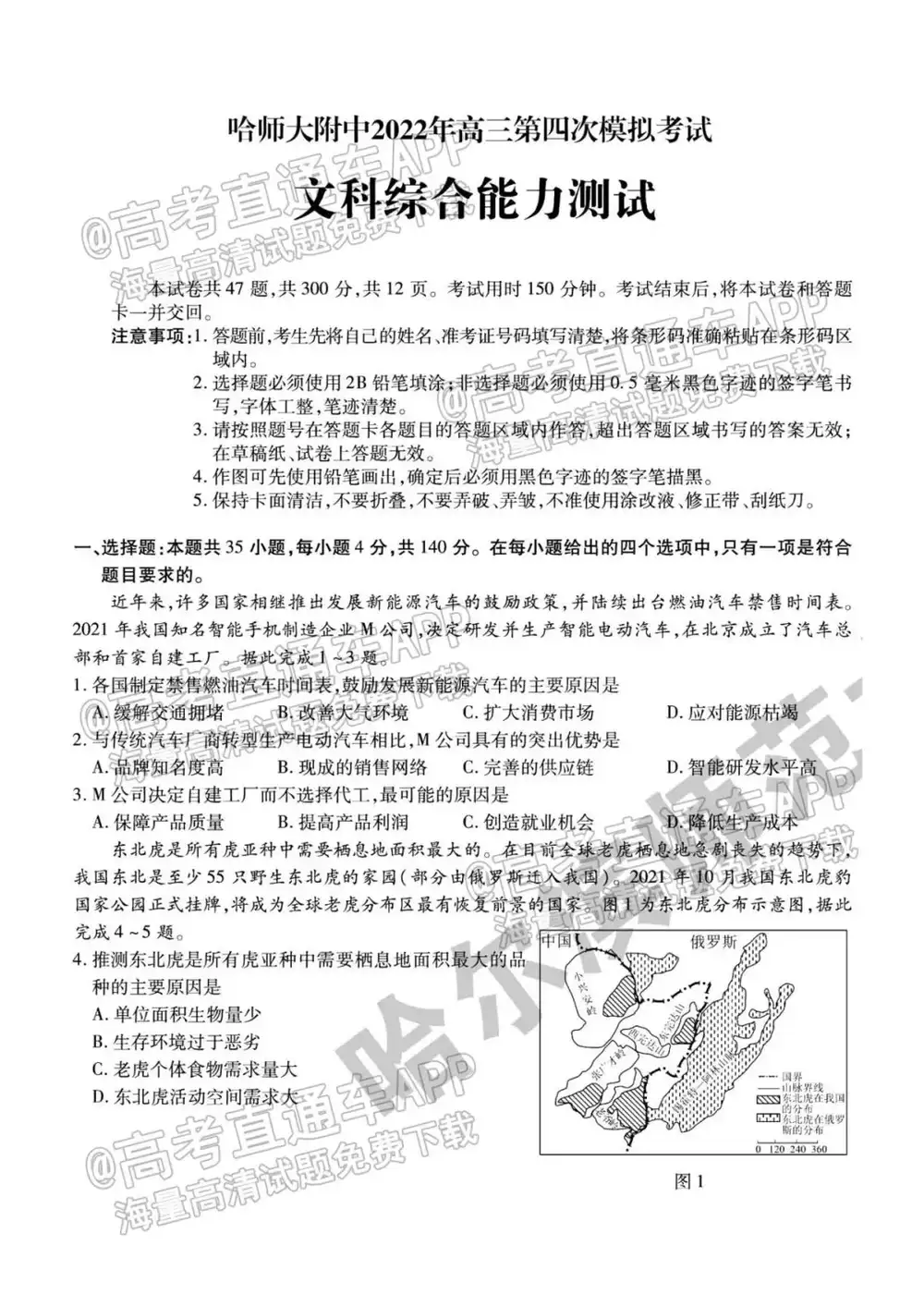 2022东北三省三校四模文综,理综,英语三科试题及参考答案