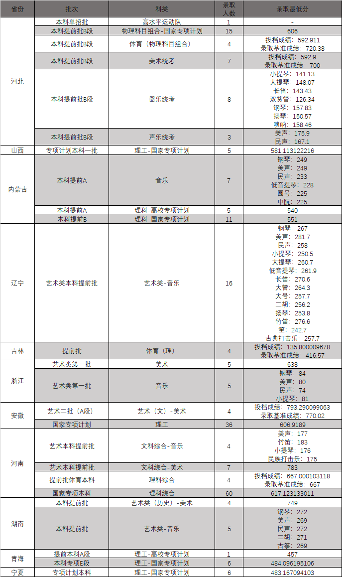 东北大学2021年各省份各批次各科类录取最低分公示